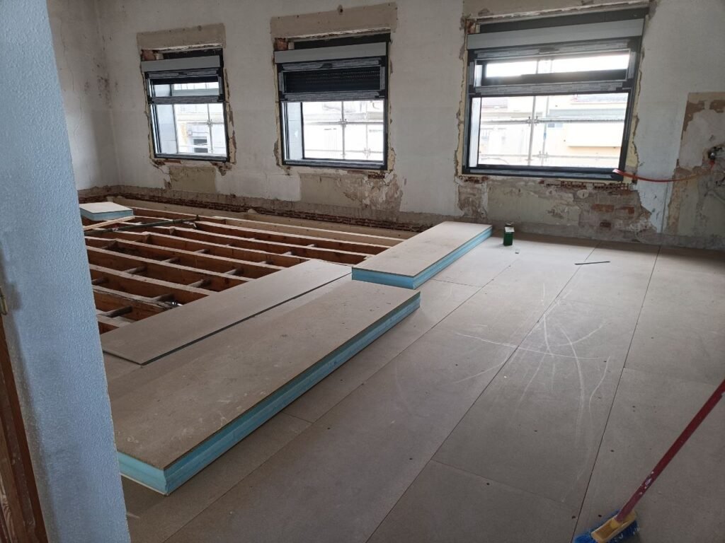• Sustitución de instalaciones térmicas por un sistema de aerotermia y unidades interiores mediante fancoils o suelo radiante en función del régimen de uso de cada estancia.